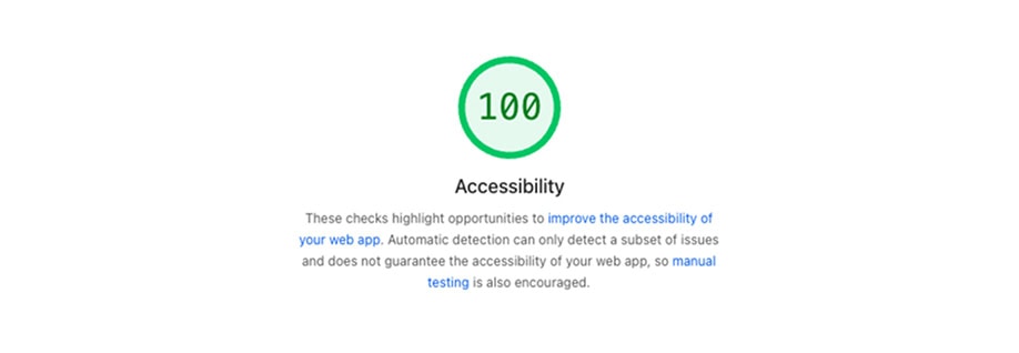 Accessibility, Best Practices, and SEO all reached 100%.
